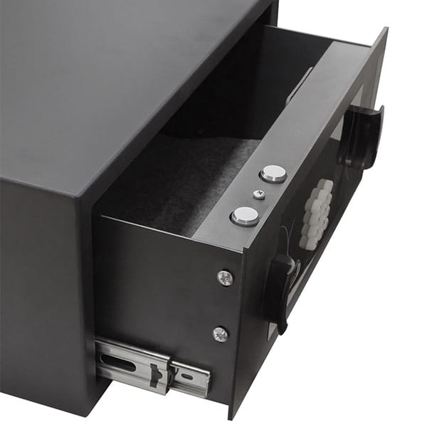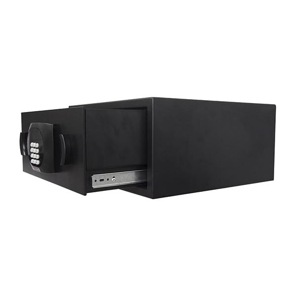 Hotel and office safe with sliding drawer type opening. Hotel safe with large top opening, which offers convenient access for objects without damaging them.