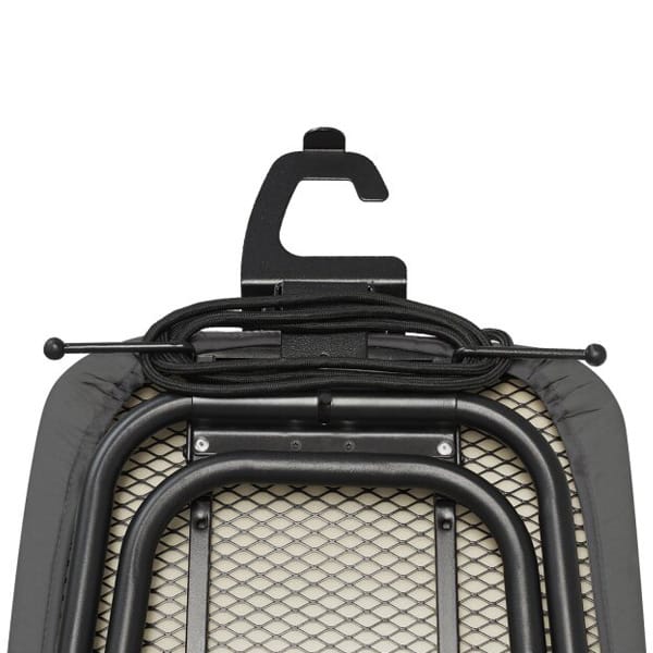 The Berkshire Ironing Centre provides a practical and secure ironing solution for hotel guest rooms. It features durable black powder coated legs and a strong frame. The deck chair mechanism allows quick and easy setup for guests. An integrated hanger and cable tidy keep the area neat and organised.