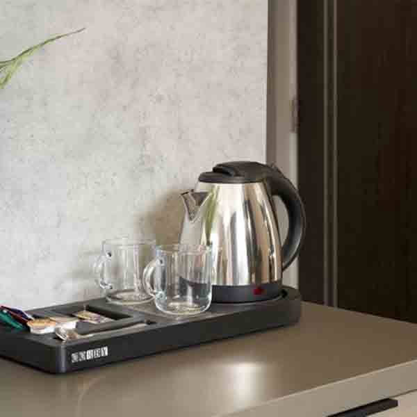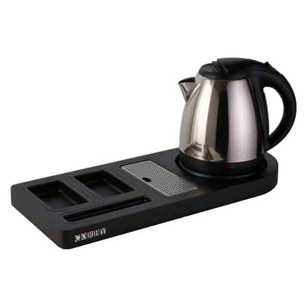 The Buckingham Standard Welcome Tray is an attractive and elegant in-room beverage solution. This product comes complete with the Buckingham 1L Black and Polished Steel Kettle.